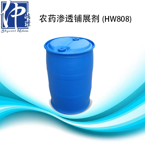 产品简介Skytech ® HW808 铺展剂是一种改性的三硅氧烷,可显著提高润湿性低分子量非离 子型有机硅表面活性剂,可显著提高农药的润湿性,延展性和渗透性。在杀虫剂 的配方中或是用作叶用农药混剂中使用时,它可以不受污染物容许量的限制;极 低的表面能迅速的扩散并湿润。产品特性超级铺展剂,提高农药扩张渗透效率;有效提高喷雾的均匀覆盖性;攻效持久,耐雨水冲刷;促进吸收农药物理特性外 观 : 淡黄透明液体粘度(25℃) : 0-100 mPa.s表面张力(0.1%wt) : ≤21.5mN/m比重(25℃) : 1.020浊点(0.1%wt) : <10℃产品应用Skytech ® HW808 属于高含量的渗透铺展剂,特别适用于杀虫剂、杀菌剂、除草剂、 叶面肥、植物生长调节剂等行业中。包 装 :200kg/桶应用注意事项1)即混即用,混合液建议在配好后 24 小时内完成喷雾;2)在酸性或碱性条件下容易水解 应用范围 建议参考用量 植物生长调节剂 0.025%-0.05%除草剂 0.025%-0.15%杀虫剂 0.025%-0.1%杀菌剂 0.015%-0.05%肥料和微量元素 0.015%-0.1%操作及贮存产品在常温条件下一般可贮存十二个月,应避免将产品长期暴露在极端冷、热 的环境中,极端冷、热的环境可能导致乳液分层、漂油。如果产品出现分层现象, 使用前需适当搅拌使其均匀;若产品出现冰冻,需将产品置于室温下缓慢解冻并 适当搅拌,切记不可将产品直接加热解冻。为了确保产品质量,容器开封后应尽 快用完,不用时须将容器盖盖紧。